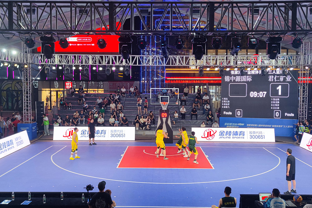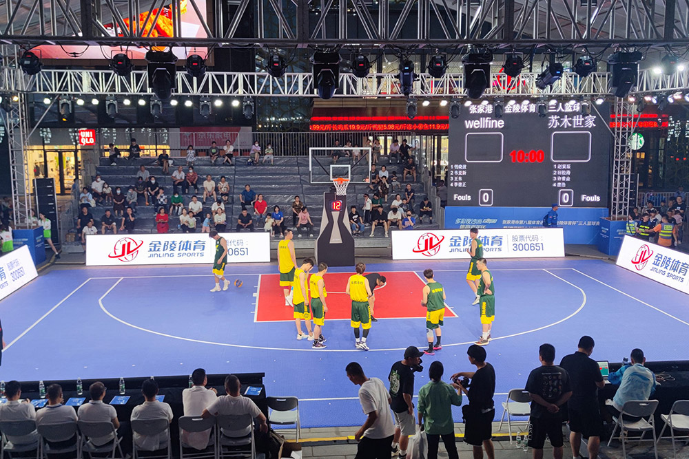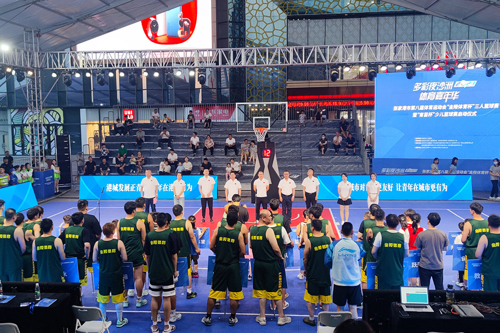 6月9日,2023多彩夜沙洲體育嘉年華—張家港市第八屆體育運動會“金陵體育杯”三人籃球賽在張家港萬達廣場開幕。