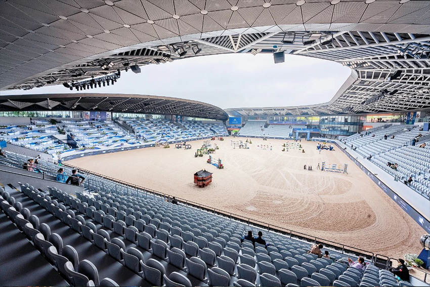 5月3日至5日,2024上海浪琴環球馬術冠軍賽在由金陵體育提供看臺座椅系統的上海久事國際馬術中心優雅上演。上海久事國際馬術中心是中國首座也是世界上唯一一座位于國際一線城市市中心的符合國際頂級馬術賽事標準的永久性專業馬術運動場館。金陵體育作為該中心看臺座椅系統的綜合服務商,承擔了其4000余座看臺座椅和200余座豪華軟包座椅的設計、生產和安裝調試,以匠心打造全新的觀賽體驗。